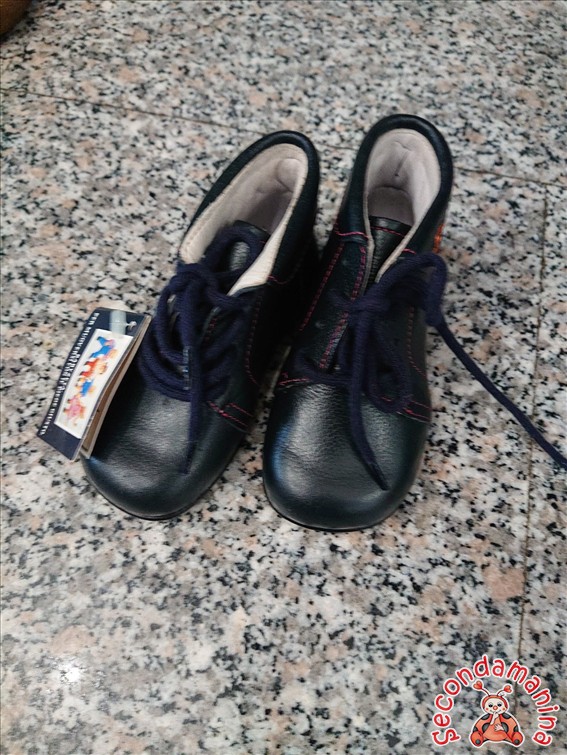 Scarpine In Cuoio Blu Con Fiori Ricamati Babyzeta N 20