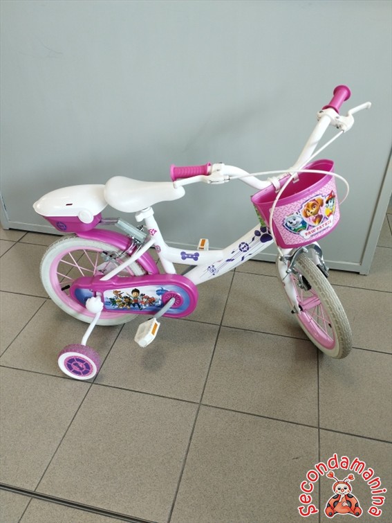 Bicicletta Bianca E Rosa Paw Patrol Raggio 14 Con Rotelle Cestino E Portaoggetti