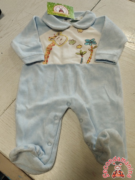 Tutina Azzurra E Bianca Con Giraffa 0/1 Mese