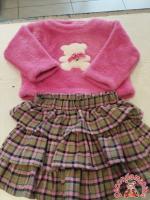 Set 2 Pz Maglioncino Gonna Scozzese Rosa Con Orsetto 24M