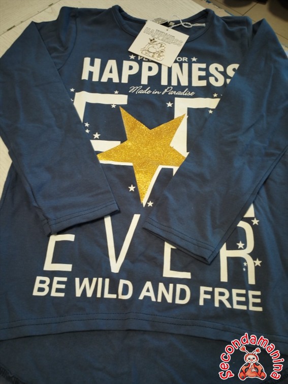 Maglietta Happyness Blu Con Stampa E Stella 12 Anni Art Nuovo Etichetta