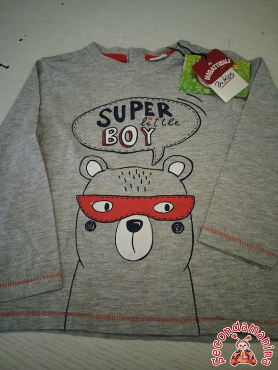 Maglietta Blukids Grigia Stampa 18-24M Art Nuovo Etichetta