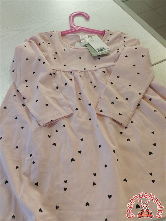 Abito H&M Rosa Con Cuori Neri 3 Articolo Nuovo Con Etichetta