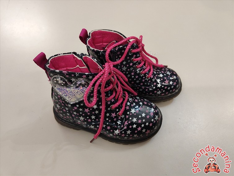 Scarpe Tipo Anfibi N. 27 Bimba Nero Con Stelle Colorate