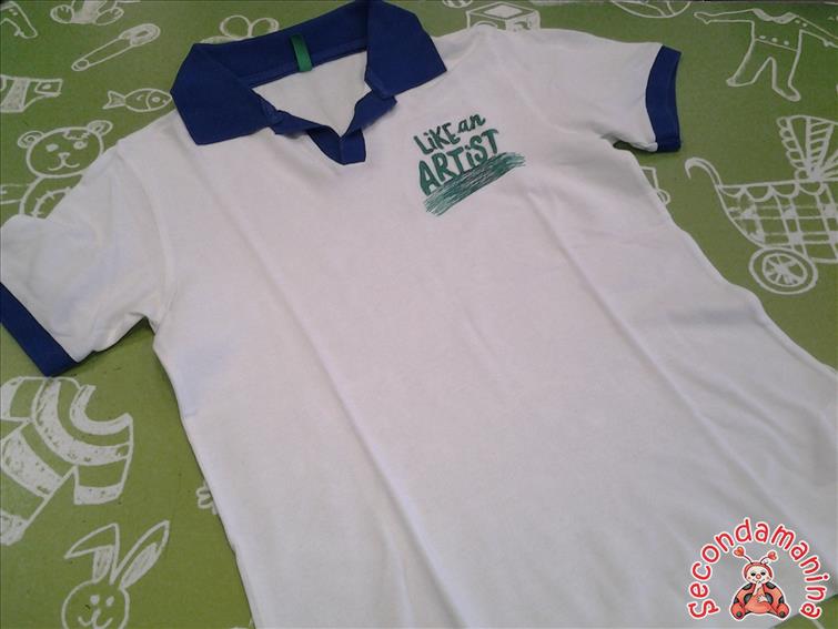 Polo M/C Bianco Colletto Blu 8/9A Benetton