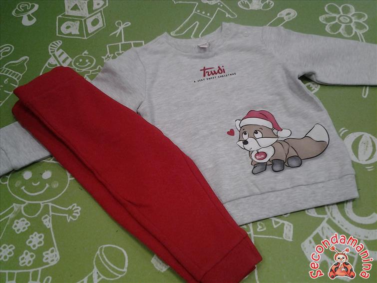 Tuta Trudi 12/18M Nuova Felpa Grigio+ Pantalone Rosso