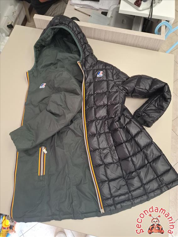 Giacca Kway Lungo Reverse 8A Nero/Verde Con Logo Leggermente Rovinato