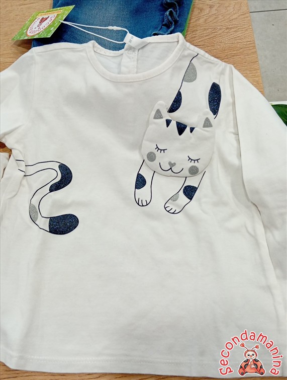 Idexe - Maglietta Manica Lunga 36 Mesi Con Gatto