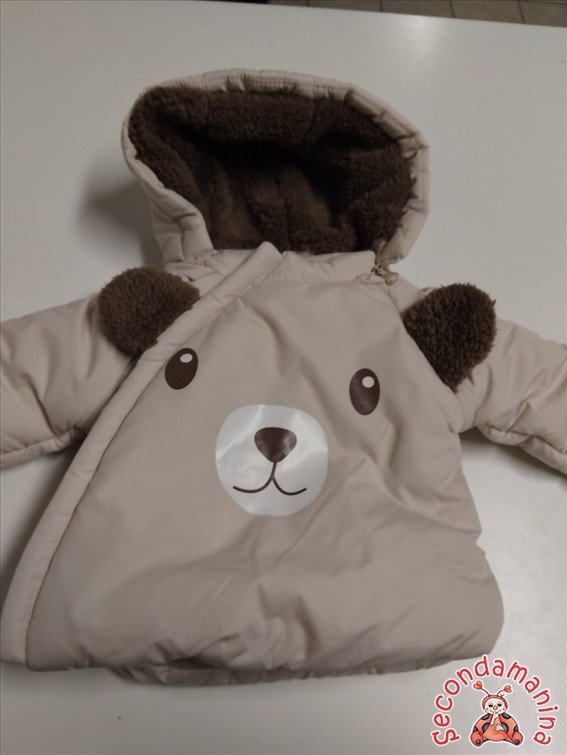 Giacca Imbottita Cappuccio Removibile Interno Pile Orsetto Prenatal 1/3M M