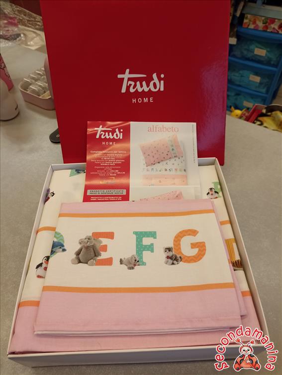 Set Lenzuola Lettino Trudi Gabel,Puro Cotone(3Pz:Sotto Angoli,Sopra,Federa) Articolo Nuovo