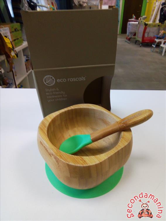 Ciotola Bambù Con Cucchiaio Per Bambini Nuova