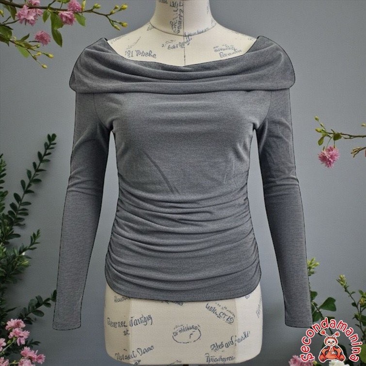Zara Maglietta Manica Lunga Grigio Scollo A Barca Con Drappeggio Tg 14 Anni