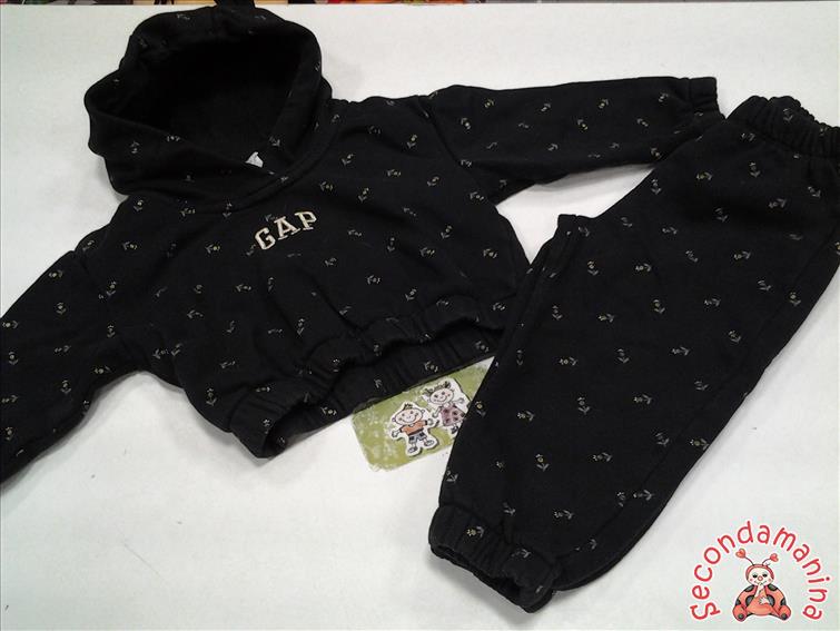 Tuta 18/24M Felpa+Pantalone Nero Fiorellini Baby Gap