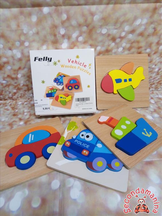 Gioco In Legno Incastri Sempbòici 4Pz Nuovo Confezionato