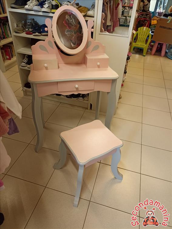 Set Toeletta Per Bambina Con Specchio Trucco E Sgabello Abbinato In Legno