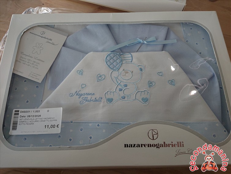 Set Lenzuola Lettino Nazareno Gabrielli Azzurro Orsetto Sopra Sotto Federa