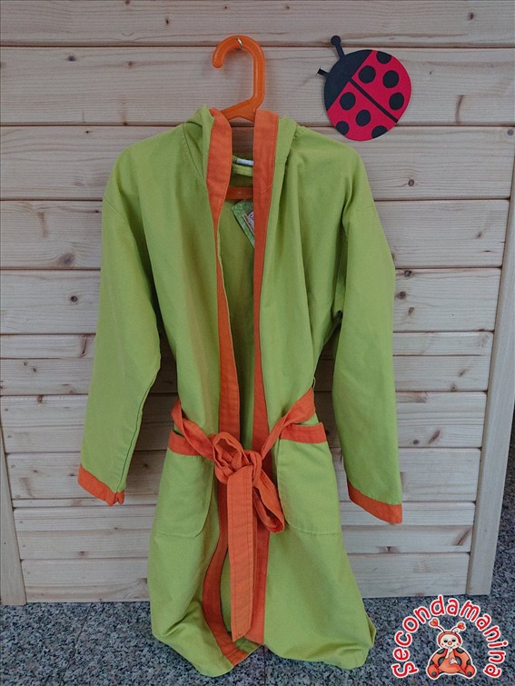 Accappatoio In Microfibra Verde Con Dettagli Arancione 6-8 Anni