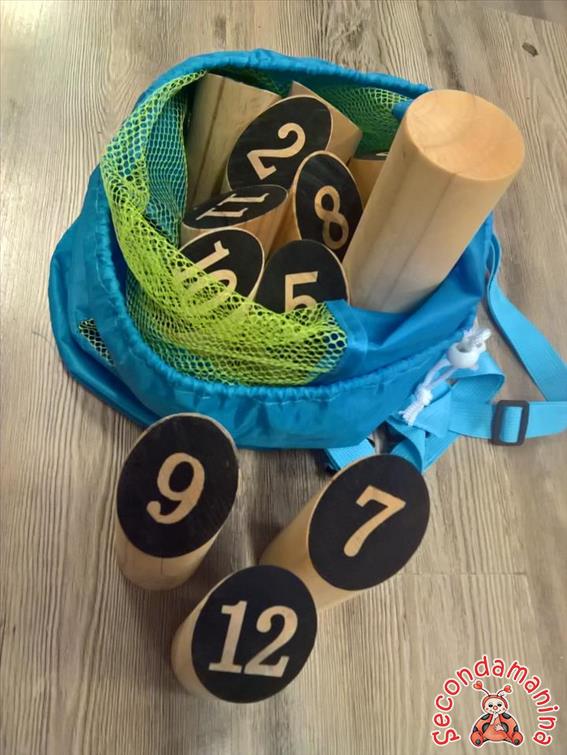 Gioco Di Birilli Finlandesi In Legno Su Sacca Blu