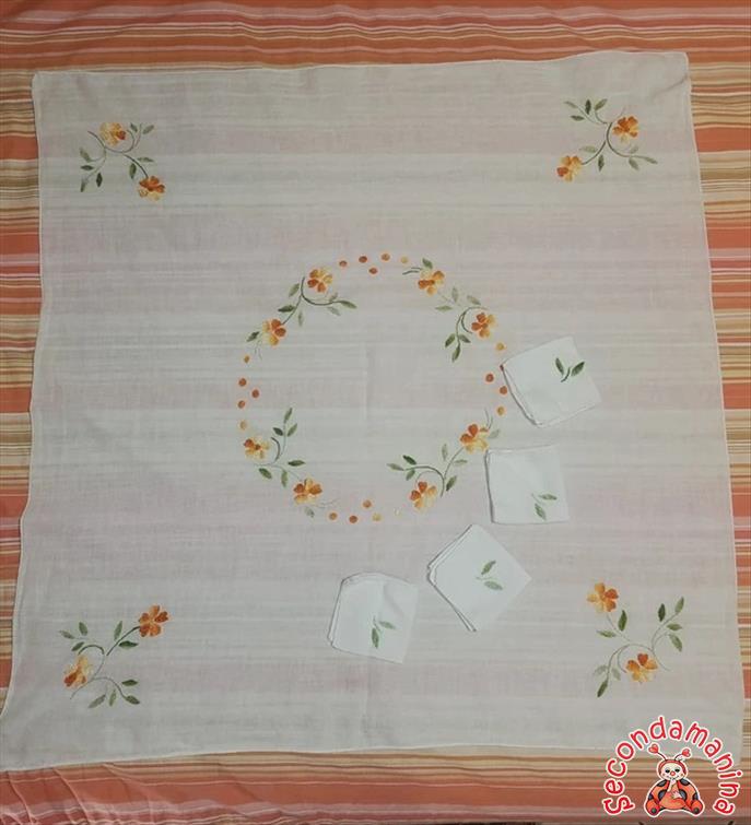 Tovaglietta in cotone 80cm x80 cm con 4 tovaglioli ricamati