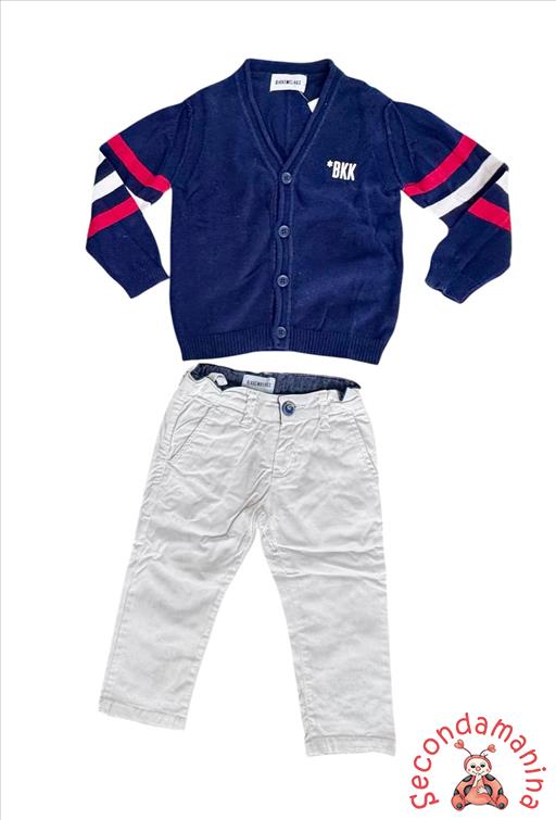 Bikkembergs Completo Cardigan E Pantalone Bianco Tg 18-24 Mesi