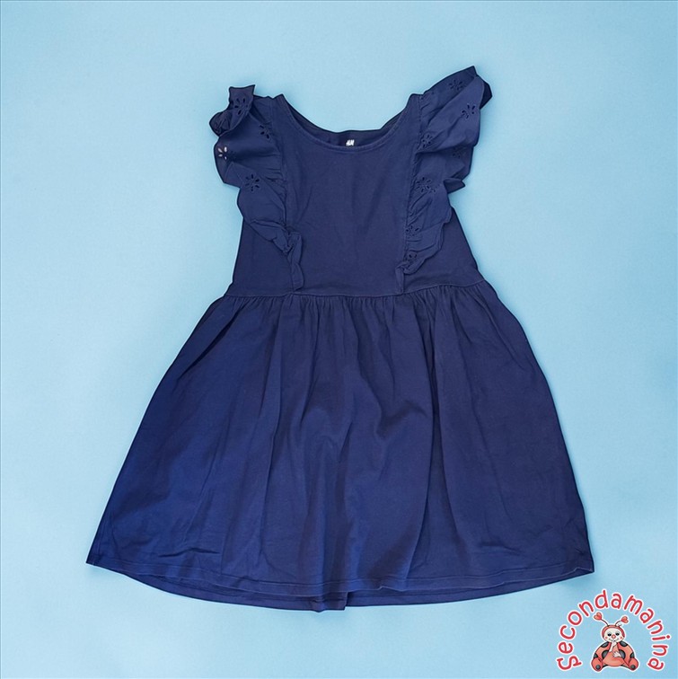 Hm Vestito Blu Manica Corta Tg 6-8 Anni