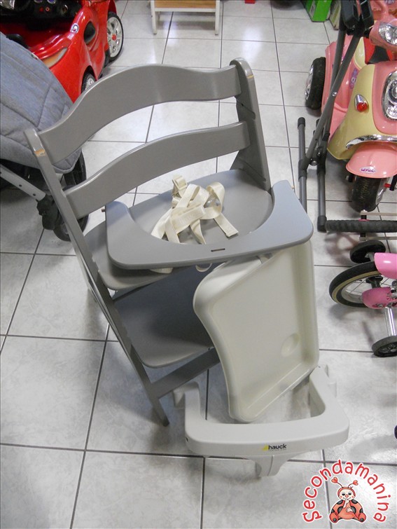 Seggiolone Hauck EVOLUTIVO, IN LEGNO, Grigio Con 2 Frontalini (In Legno E Plastica) Vassoio E Cinghiette