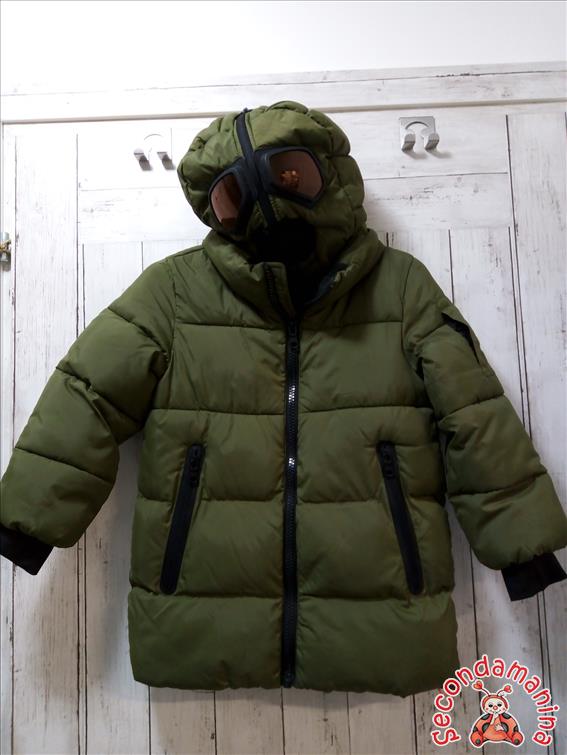 Giacca Om Tg 7/8 Anni Verde Militare Con Cappuccio Maschera