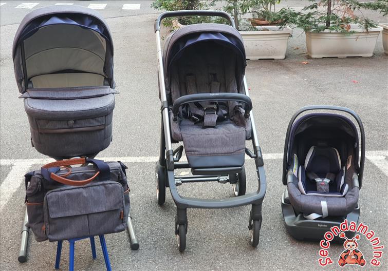 Trio Inglesina Aptica TENUTO BENSSIMO COMPLETO DI BORSA CAMBIO, COPRI GAMBE PASSEGGINO STEND UP E BASE AUTOAUTOFIX
